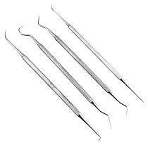Stainless Steel Dental Picks - Probes - Carver Picks - Set of 4 - Non-Slip Grooved Shafts